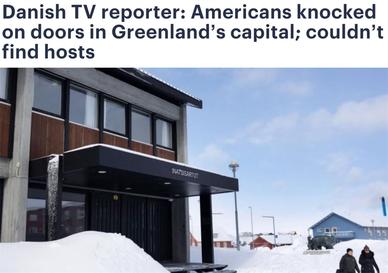 據(jù)丹麥電視二臺記者賈斯珀·斯坦梅茨在節(jié)目中披露,萬斯率領(lǐng)的代表團出發(fā)之前,美國政府已秘密派人到格陵蘭島相關(guān)地區(qū)“做工作”,希望當(dāng)?shù)孛癖姎g迎萬斯一行,但卻碰了一鼻子灰。