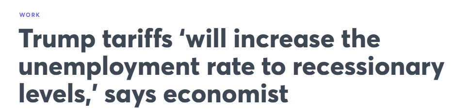 【世界說】美經(jīng)濟(jì)學(xué)家:關(guān)稅政策將致美國失業(yè)率飆升至經(jīng)濟(jì)衰退水平 就業(yè)市場或迎寒冬