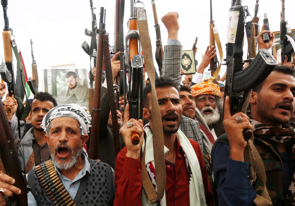 4月11日,數(shù)萬(wàn)民眾在也門首都薩那參加游行集會(huì),抗議美軍對(duì)也門的空襲。新華社發(fā)(穆罕默德·穆罕默德攝)