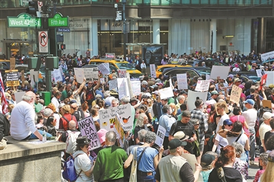 美方濫施關(guān)稅措施招致美國國內(nèi)越來越多的反對聲音,擔(dān)憂情緒在民眾中不斷蔓延。美國哥倫比亞廣播公司與輿觀調(diào)查公司的一項(xiàng)最新民調(diào)結(jié)果顯示,58%的受訪美國民眾表示反對美國關(guān)稅政策,53%的受訪者認(rèn)為美國國會(huì)應(yīng)該阻止或限制新關(guān)稅,58%的受訪者認(rèn)為關(guān)稅政策導(dǎo)致食品雜貨價(jià)格上漲。4月19日,美國多地舉行抗議活動(dòng),首都華盛頓、紐約、舊金山、波士頓等城市的民眾走上街頭,抗議現(xiàn)政府加征關(guān)稅、大規(guī)模裁員、驅(qū)逐移民等政策。