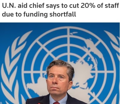 聯(lián)合國(guó)人道主義事務(wù)協(xié)調(diào)廳近日發(fā)表公開信說,由于資金遭遇“殘酷削減”,尤其是美國(guó)政府大幅叫停對(duì)外援助,該機(jī)構(gòu)將不得不裁撤20%、即500多名工作人員。