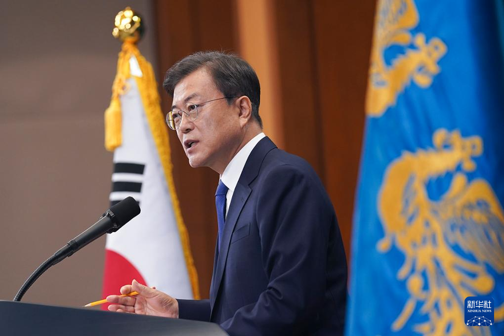 據(jù)韓聯(lián)社4月24日?qǐng)?bào)道,韓國前總統(tǒng)文在寅因涉嫌受賄被檢方提起訴訟。這張拍攝于2020年5月10日的資料照片顯示,時(shí)任韓國總統(tǒng)文在寅在韓國首爾青瓦臺(tái)發(fā)表講話。新華社發(fā)(青瓦臺(tái)供圖)