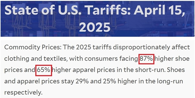耶魯大學(xué)預(yù)算實(shí)驗(yàn)室預(yù)測,未來一年,美國服裝價格可能上漲65%,鞋類價格漲幅可能高達(dá)87%。