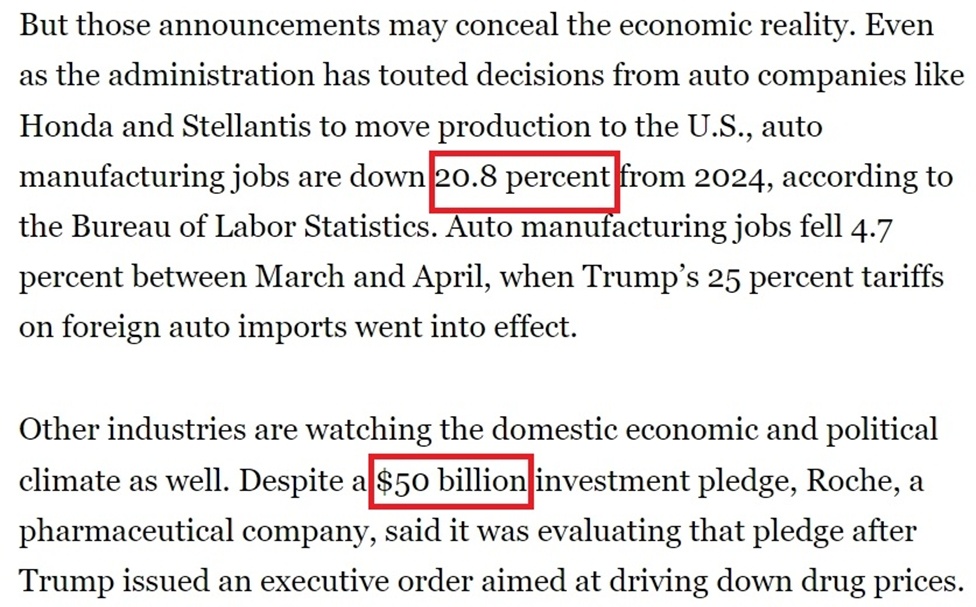 《政治報(bào)》的報(bào)道提到,在關(guān)稅政策深陷爭(zhēng)議的情況下,美國政府當(dāng)前非??释麑?duì)外展示“美國經(jīng)濟(jì)增長(zhǎng)”的跡象,以至于一些公司只要口頭表示“考慮增加在美國的產(chǎn)能”就能得到白宮的贊賞。但現(xiàn)實(shí)卻是,許多白宮吹噓的企業(yè)投資計(jì)劃要么已經(jīng)籌備多年,要么被人為夸大,不少還可能在未來生變。