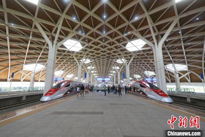 5月24日,雅加達(dá)哈利姆站??康难湃f高鐵高速動(dòng)車組列車。中新社記者 李志全 攝