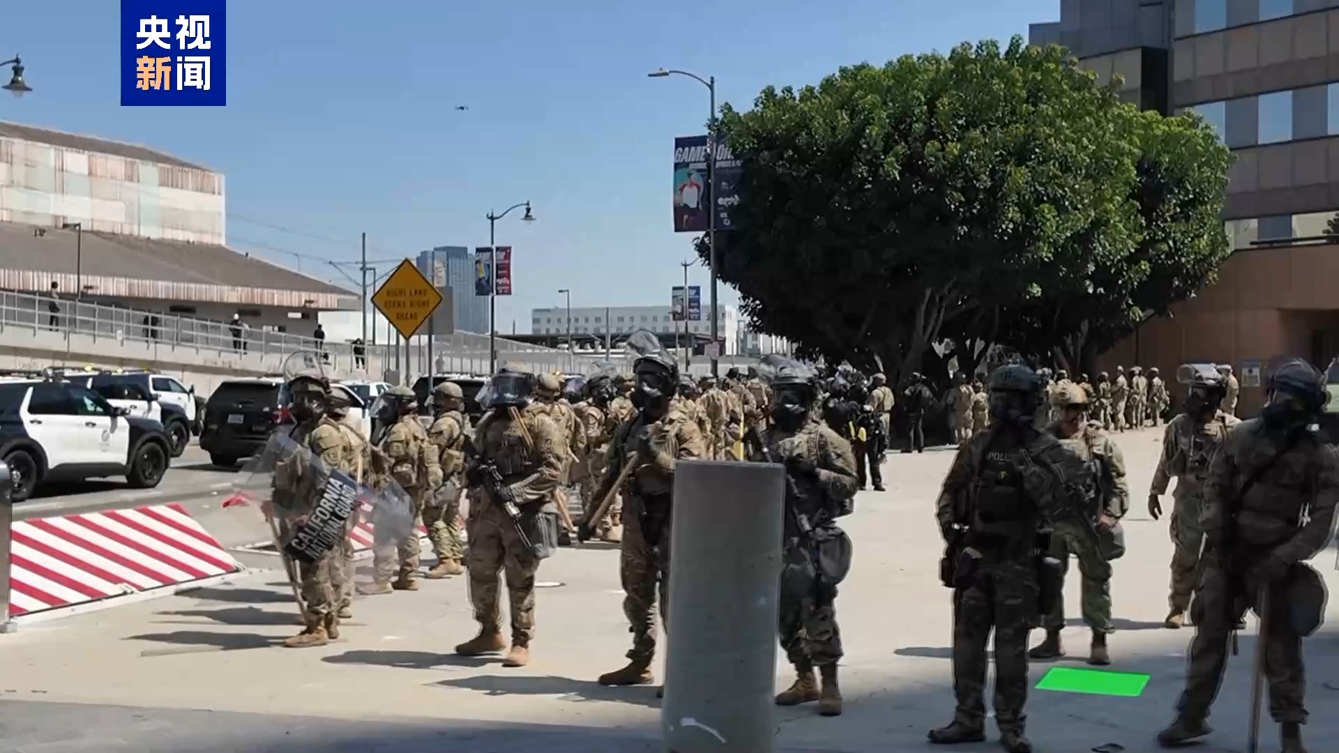 央視記者 劉驍騫:同時(shí),美國國民警衛(wèi)隊(duì)已部署在現(xiàn)場。這些荷槍實(shí)彈穿著迷彩服的士兵就是特朗普政府部署的國民警衛(wèi)隊(duì)隊(duì)員,他們在幾個(gè)小時(shí)前,也就是當(dāng)?shù)貢r(shí)間8日上午入駐到這里。根據(jù)官方消息,目前已經(jīng)有至少300名國民警衛(wèi)隊(duì)隊(duì)員抵達(dá)洛杉磯。