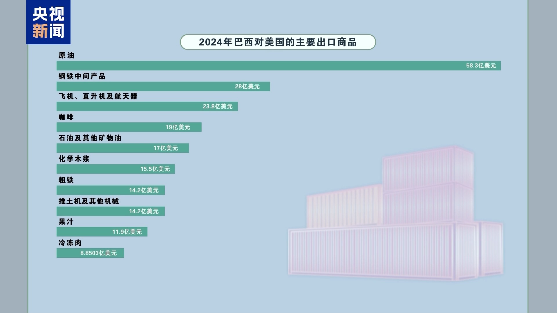 美國(guó)有線電視新聞網(wǎng)報(bào)道稱,2024年,巴西向美國(guó)出口了總額高達(dá)404億美元的商品。咖啡、果汁、冷凍肉等美國(guó)民眾日常食物以及原油、粗鐵等基礎(chǔ)化工及能源商品都在排名前十內(nèi)。