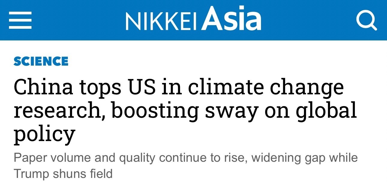 《日經(jīng)亞洲評論》22日發(fā)布的一篇文章指出,中國在2023年發(fā)表的氣候變化研究論文數(shù)量超過了美國,并在次年擴(kuò)大了領(lǐng)先優(yōu)勢。這一趨勢凸顯了中國全球影響力的持續(xù)增長,與此同時,美國卻在逐漸退出這一領(lǐng)域。