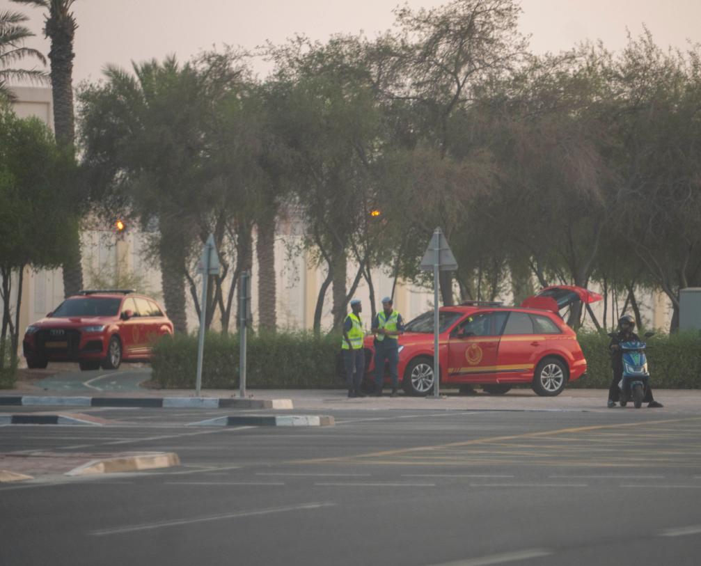 9月9日,在卡塔爾首都多哈,安全人員在事發(fā)現(xiàn)場附近執(zhí)勤。新華社發(fā)(尼庫攝)