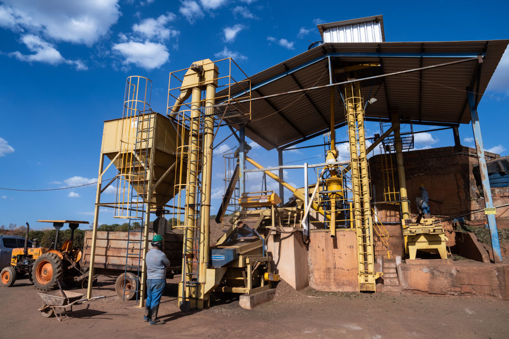 8月27日,在位于巴西米納斯吉拉斯州巴拉那伊巴河畔卡爾穆的一家咖啡莊園,工作人員進行咖啡處理作業(yè)。新華社記者王天聰攝