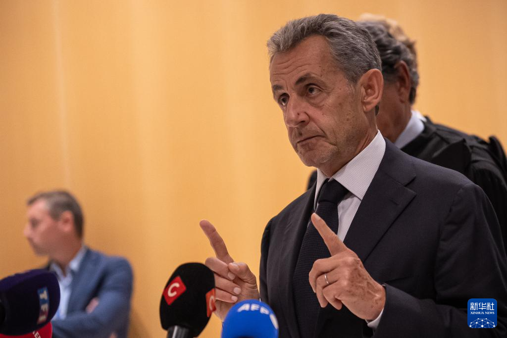 9月25日,在法國巴黎,法國前總統(tǒng)薩科齊在庭審后接受媒體采訪。新華社發(fā)(奧雷利安·莫里薩爾攝)