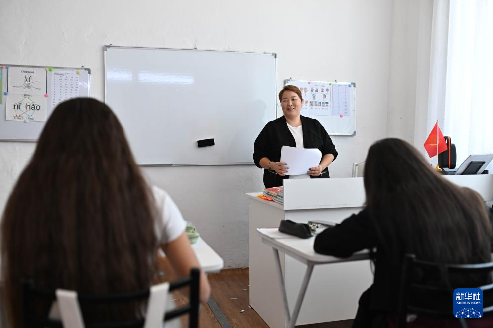 在吉爾吉斯斯坦伊塞克湖州卡拉庫爾市一間20多平方米的教室里,中文教師庫巴內(nèi)奇別科娃正和幾名10多歲的孩子練習(xí)中文對(duì)話,學(xué)生們生動(dòng)有趣的回答不時(shí)引發(fā)歡快的笑聲。