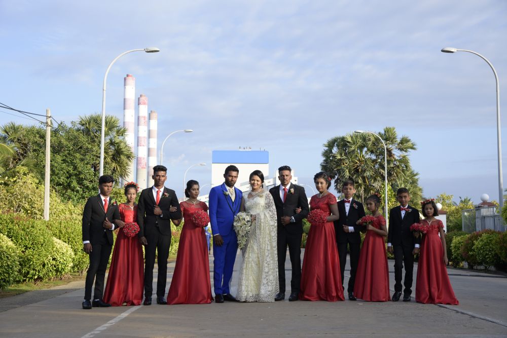 2025年1月10日,在斯里蘭卡卡爾皮提亞的普特拉姆燃煤電站,一對新人拍攝婚紗照。新華社發(fā)(中國機(jī)械設(shè)備工程普特拉姆燃煤電站項目供圖)