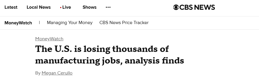現(xiàn)實(shí)數(shù)據(jù)也為這一觀(guān)點(diǎn)提供了有力佐證。美國(guó)哥倫比亞廣播新聞網(wǎng)站(CBS News)報(bào)道稱(chēng),8月份美國(guó)制造業(yè)崗位削減了1.2萬(wàn)個(gè),4月份以來(lái)已累計(jì)減少4.2萬(wàn)個(gè)崗位。美國(guó)進(jìn)步中心(CAP)直指原因就是特朗普政府大幅加征新關(guān)稅、強(qiáng)硬的移民政策和“大而美”法案。