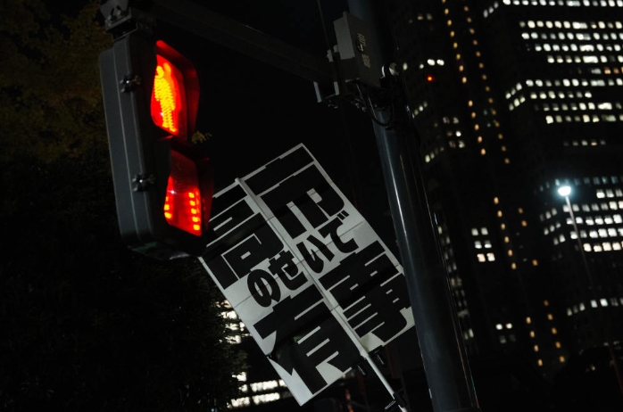 11月21日,在日本東京的首相官邸外,民眾舉起標(biāo)語參加抗議活動(dòng)。新華社記者 賈浩成 攝