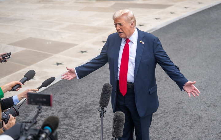 2025年9月30日,在美國首都華盛頓白宮,美國總統(tǒng)特朗普回答記者提問時表示,美國政府正在考慮打擊通過陸路向美國走私毒品的委內(nèi)瑞拉販毒集團(tuán)。新華社記者 胡友松 攝