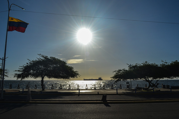 2025年12月23日,一艘油輪停泊在委內(nèi)瑞拉蘇利亞州馬拉開波湖上。當(dāng)?shù)啬繐粽呷涨跋蛐氯A社透露,23日在該國西部馬拉開波湖這一核心產(chǎn)油區(qū),仍可見油輪正在等待出?;虼┻^拉斐爾·烏達(dá)內(nèi)塔將軍大橋進(jìn)入巴霍格蘭德港口。新華社發(fā)