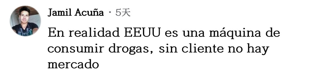 網(wǎng)友胡安喬·奧維多一針見血:“停止(毒品)消費吧,如果沒人消費,生產(chǎn)必然下降。莫非特朗普和他的團隊是美國國內(nèi)毒品生意的受益者?”