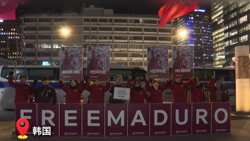 韓國民眾民主黨5日在美國駐韓國大使館前舉行黨內(nèi)演講會,并計劃向美國大使館遞交抗議信,要求美方釋放委內(nèi)瑞拉總統(tǒng)馬杜羅。