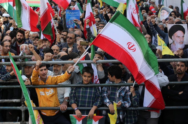 2025年11月4日,民眾在伊朗首都德黑蘭參加反美反以集會。當天,伊朗多地民眾舉行集會,譴責美國霸權(quán)和以色列的侵略行為。新華社發(fā)