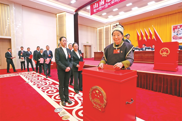 圖為山南市人大代表投票選舉新一屆山南市人大常委會主任、副主任及委員。