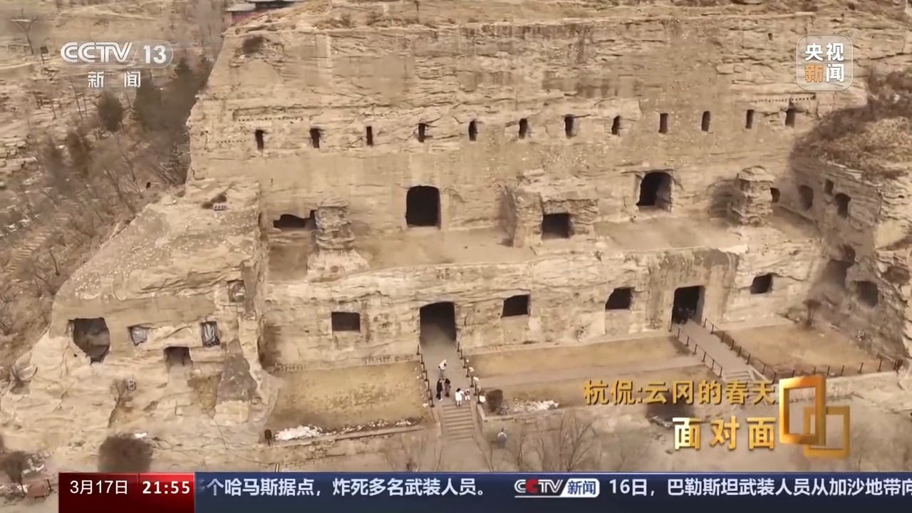 3月的山西大同,乍暖還寒,到訪云岡石窟的游客依舊熱情不減。跟隨云岡研究院院長(zhǎng)杭侃,我們一起回望這段跨越1500多年的歷史。云岡石窟的開(kāi)鑿始于北魏時(shí)期,它是佛教傳入中國(guó)后,第一次以皇家的力量主持開(kāi)鑿的石窟群,有“真容巨壯”“窮諸巧麗”之譽(yù)。云岡石窟現(xiàn)存主要洞窟45個(gè),附屬洞窟209個(gè),大小造像5.9萬(wàn)余尊,2001年被聯(lián)合國(guó)列入世界遺產(chǎn)名錄。第20窟露天大佛是云岡石窟的標(biāo)志性景觀,然而,我們并沒(méi)有在這里過(guò)多停留,杭侃把我們帶到了他更感興趣的另一個(gè)地方。