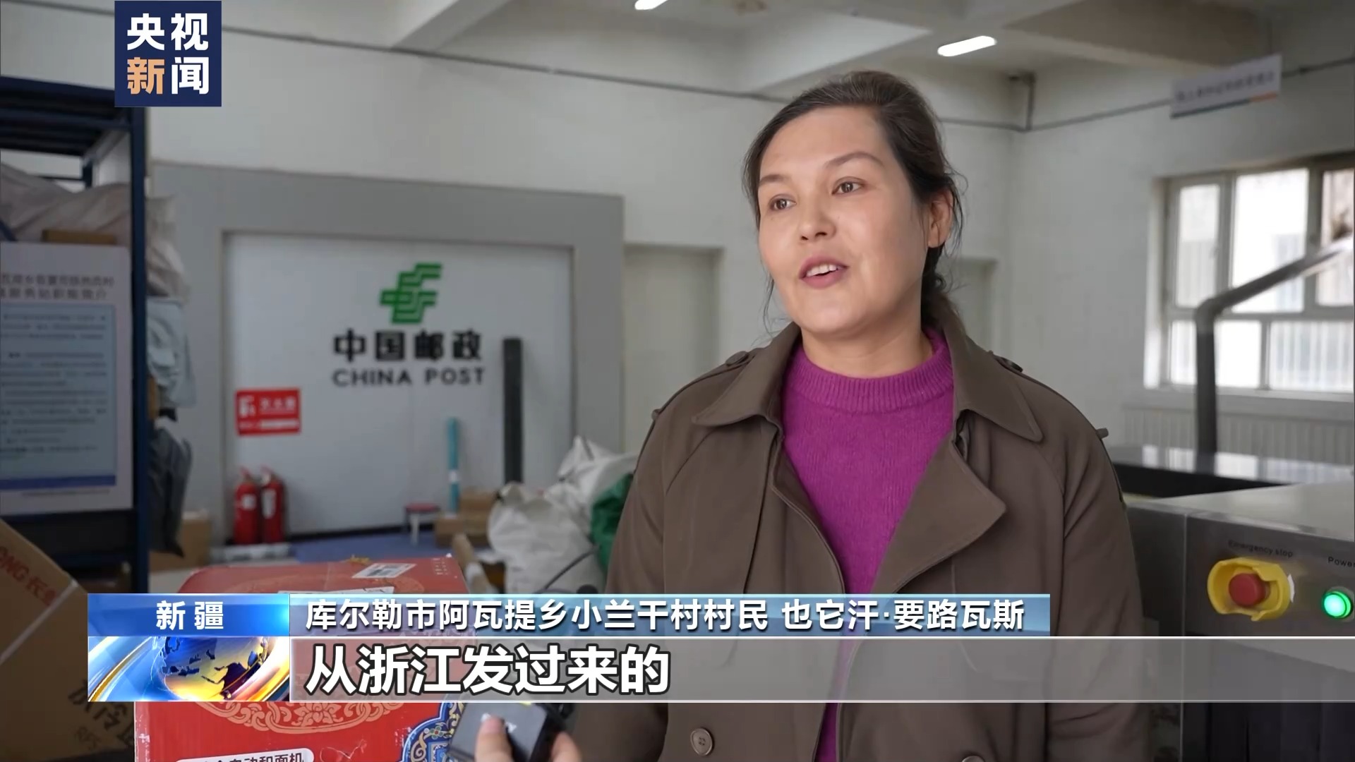庫爾勒市阿瓦提鄉(xiāng)小蘭干村村民 也它汗·要路瓦斯:我在網(wǎng)上買了一個和面機,從浙江發(fā)過來的。過去拿快遞只能到鄉(xiāng)里,現(xiàn)在直接到家門口,當天我就拿到手。
