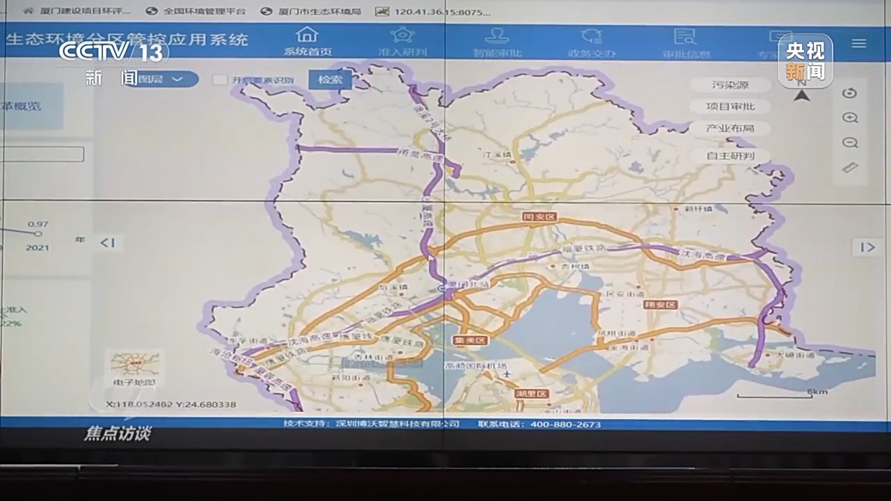 福建廈門(mén)市生態(tài)環(huán)境局環(huán)評(píng)處處長(zhǎng) 詹源:我們?cè)谙到y(tǒng)里面融入了國(guó)土空間、市政設(shè)施、產(chǎn)業(yè)布局以及生態(tài)環(huán)境,一共有207個(gè)矢量圖層,在這里面可以查看到空間信息、污水管網(wǎng)設(shè)置、產(chǎn)業(yè)布局規(guī)劃等信息。同時(shí),我們還梳理了10萬(wàn)多條準(zhǔn)入條件,形成了分區(qū)管控的智慧內(nèi)核。