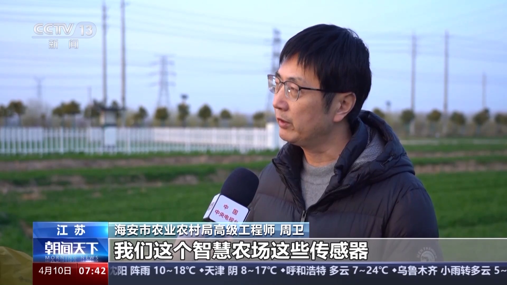 海安市農(nóng)業(yè)農(nóng)村局高級工程師 周衛(wèi):國家就把整個渠道、道路、灌溉系統(tǒng)修好,我們這個智慧農(nóng)場這些傳感器基本上都是國家補(bǔ)貼的。