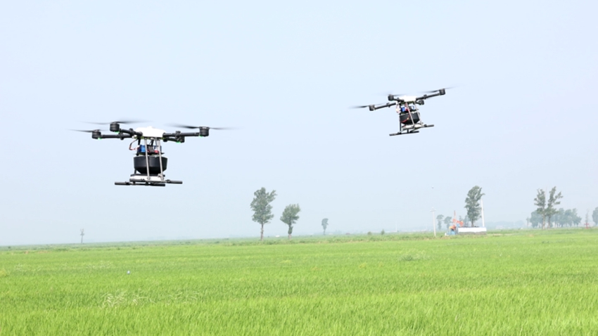 遙控?zé)o人機(jī)參與科學(xué)種植。公主嶺市委宣傳部供圖