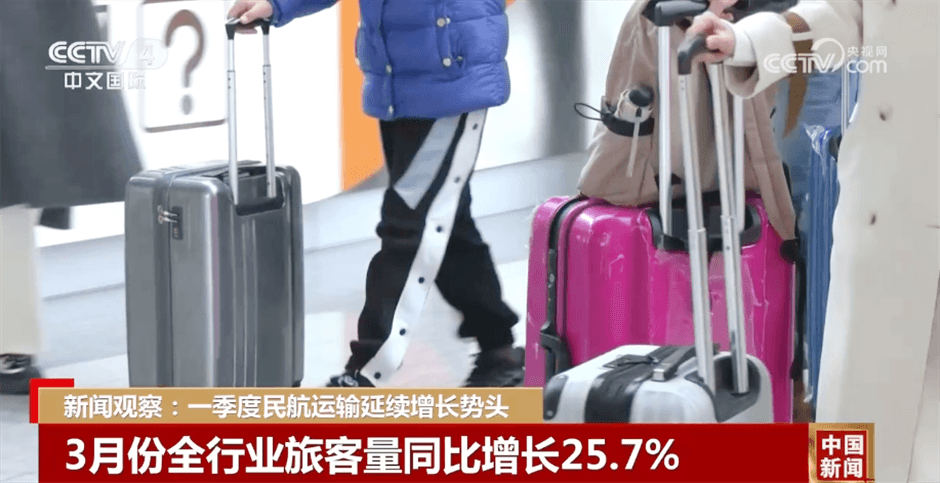 3月,全行業(yè)共完成旅客運輸量5473萬人次,同比增長25.7%,較2019年同期增長7.3%;完成貨郵運輸量70.8萬噸,同比增長28.2%,較2019年同期增長12.3%。
