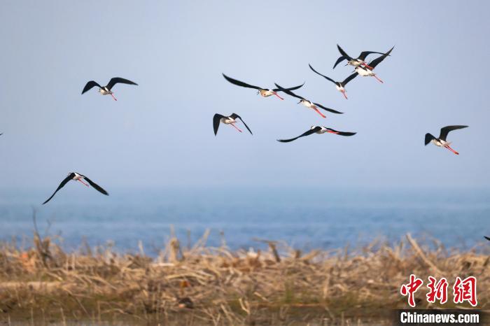 成群黑翅長(zhǎng)腳鷸,它們時(shí)而緩慢涉水行走,時(shí)而自由飛翔,構(gòu)成春日里一幅靈動(dòng)的生態(tài)畫卷。