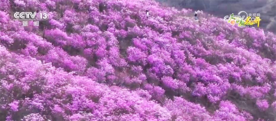 這里是遼寧省鞍山市岫巖滿族自治縣的黃嶺村,映山紅迎春綻放,粉紅色的花海綿延近十里,在山巒中鋪開,燦若云霞。一團(tuán)團(tuán)、一簇簇色彩艷麗的花朵,與高山叢林交相輝映,蔚為壯觀。各方游客紛至沓來,感受春日浪漫、定格美好瞬間。預(yù)計這里的花期將持續(xù)到4月底。