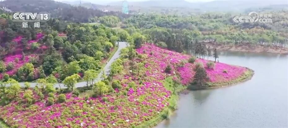 四月芳菲,春光正盛。在江蘇南京銀杏湖,800萬株杜鵑花迎著明媚的春光次第綻放。遠(yuǎn)遠(yuǎn)望去,連片的杜鵑花點綴著朱紅、淡粉與純白,密密匝匝擁在一起,把湖光山景染成了斑斕的畫卷。園區(qū)里的千畝杜鵑花花期將持續(xù)到五月初。