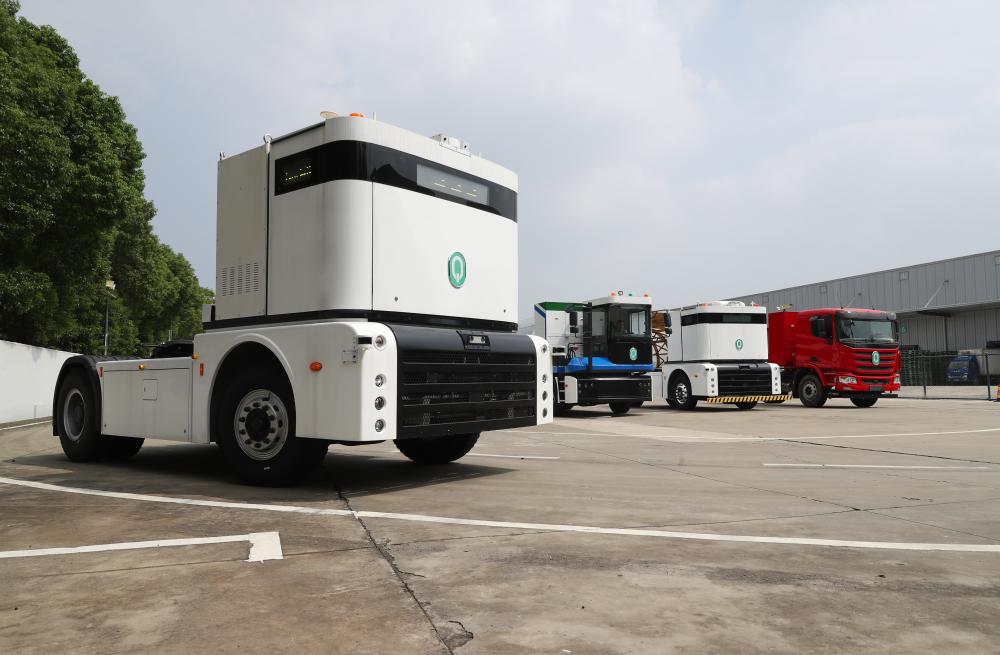 一輛西井科技的無人駕駛重卡Q-Truck(前)在位于上海的無人駕駛商用車聯(lián)合實(shí)驗(yàn)室場地上進(jìn)行動態(tài)測試(2023年9月26日攝)。 新華社記者 方喆 攝