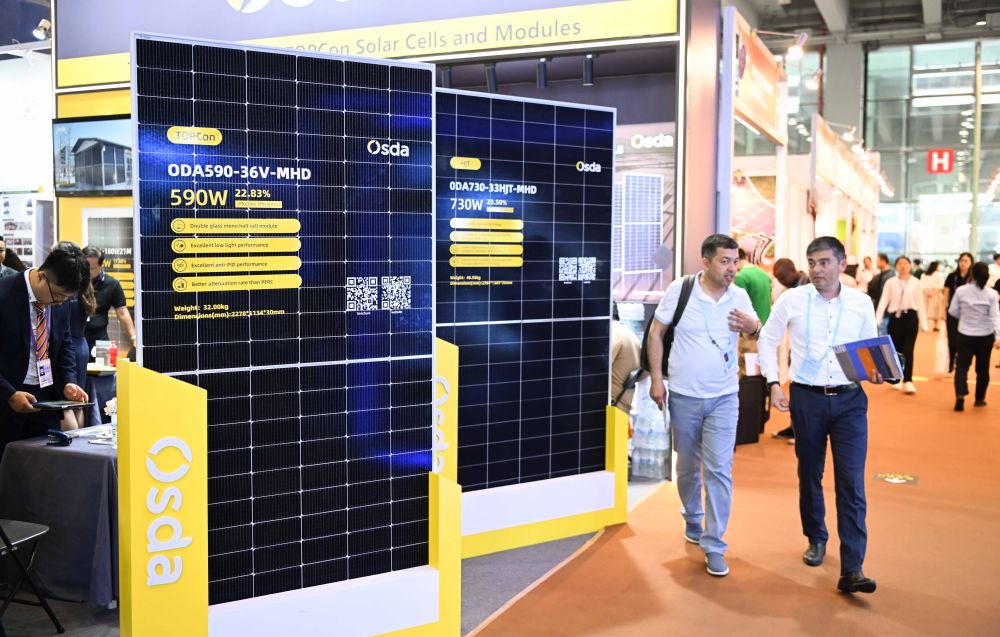 在創(chuàng)維公司的展廳,眾多客商圍觀一款可以由直面屏變?yōu)榍嫫恋淖冃坞娨?。除家電外,公司還專設(shè)新能源光伏的展區(qū)。創(chuàng)維公關(guān)負(fù)責(zé)人孫妮介紹說:“四年內(nèi),創(chuàng)維新能源業(yè)務(wù)從無到有,目前達(dá)到約234億元的規(guī)模。”面對全球光伏及儲能領(lǐng)域的巨大市場機遇,創(chuàng)維集團積極推進(jìn)新能源業(yè)務(wù)出海,現(xiàn)已布局到澳大利亞、墨西哥、南非等27個國家和地區(qū)。