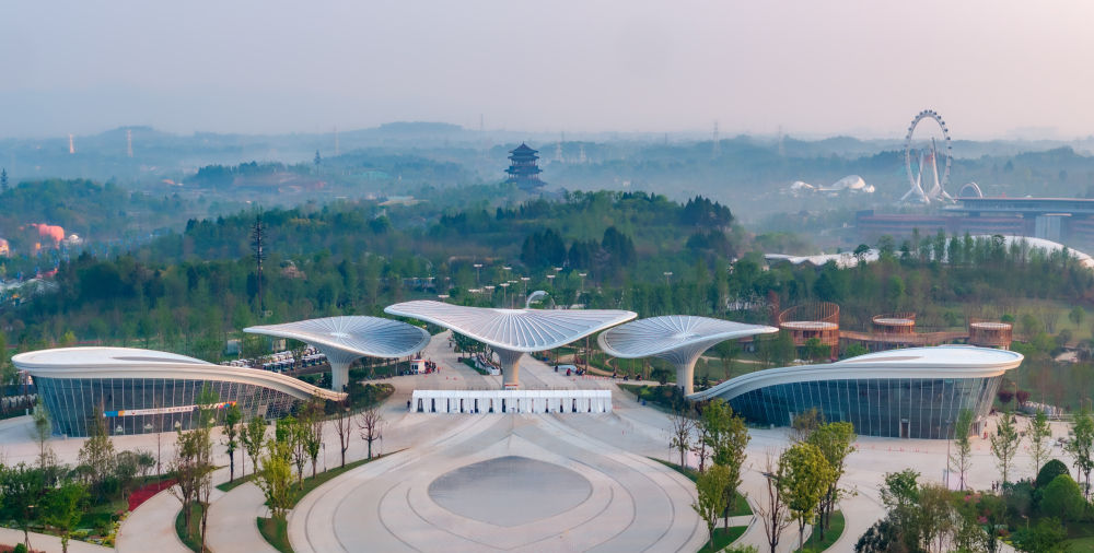 窗含千秋,門泊萬里。從空中俯瞰,2024年成都世界園藝博覽會(huì)主會(huì)場(chǎng)如同一朵盛放的芙蓉花,迎接世界各方賓朋。