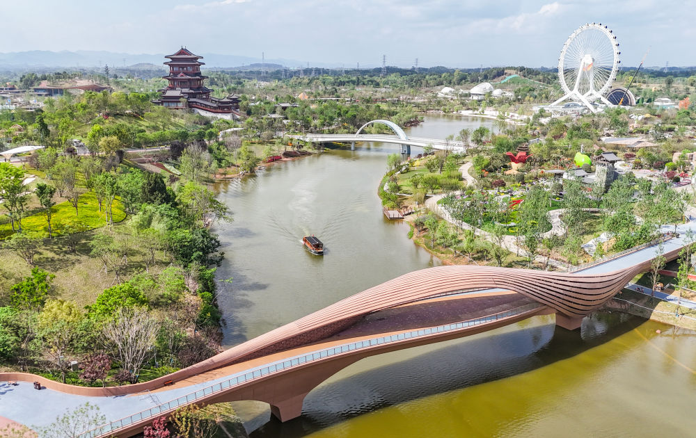 這是2024年4月22日拍攝的成都世園會(huì)主會(huì)場(chǎng)(無人機(jī)照片)。新華社記者 王曦 攝