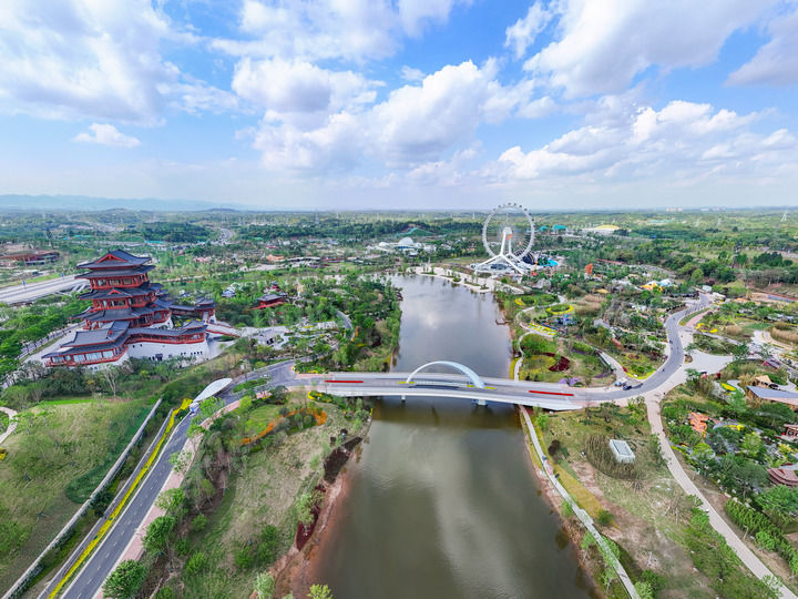 這是2024年4月23日拍攝的成都世園會(huì)郫都分會(huì)場(chǎng)(無人機(jī)照片)。新華社記者 王曦 攝