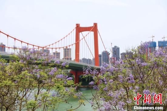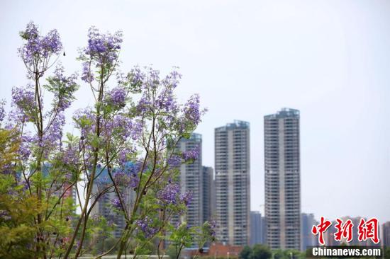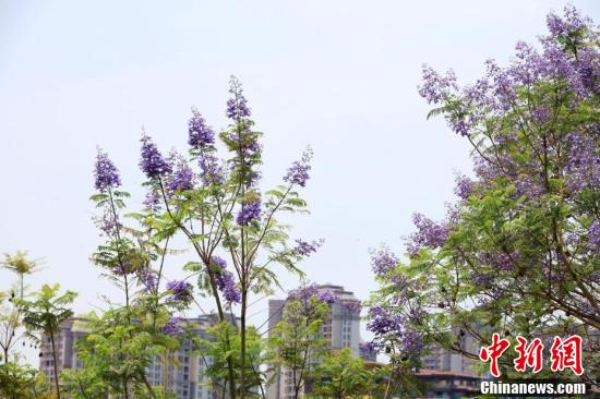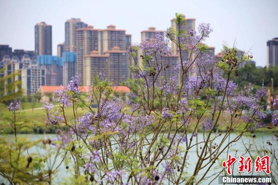 近日,廣西南寧市藍(lán)花楹盛開,藍(lán)紫色彩為城市增添了一道浪漫美景。