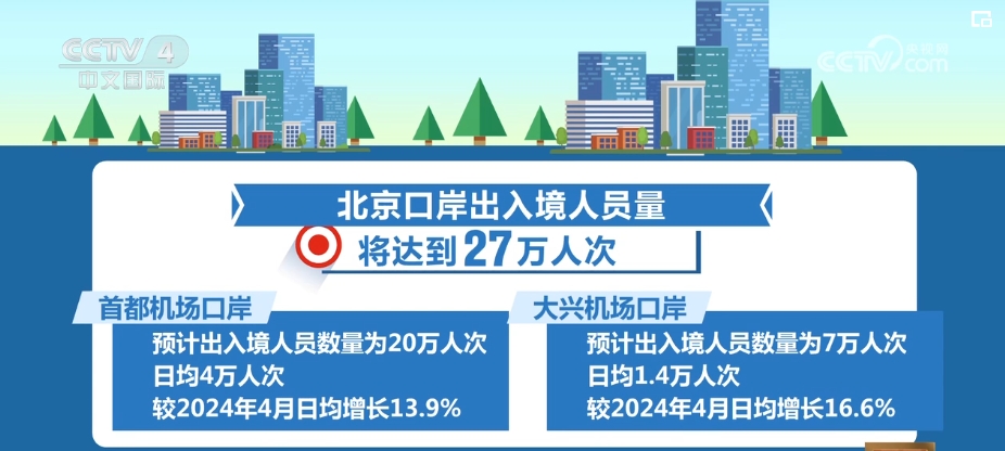 預(yù)計(jì),北京首都機(jī)場口岸、大興機(jī)場口岸日均出入境人員將分別達(dá)到4萬人次、1.4萬人次,較本月分別增長13.9%、16.6%。受第135屆廣交會(huì)疊加免簽政策實(shí)施等因素影響,廣州“五一”假期出入境客流預(yù)計(jì)約22萬人次,同比增長102%。