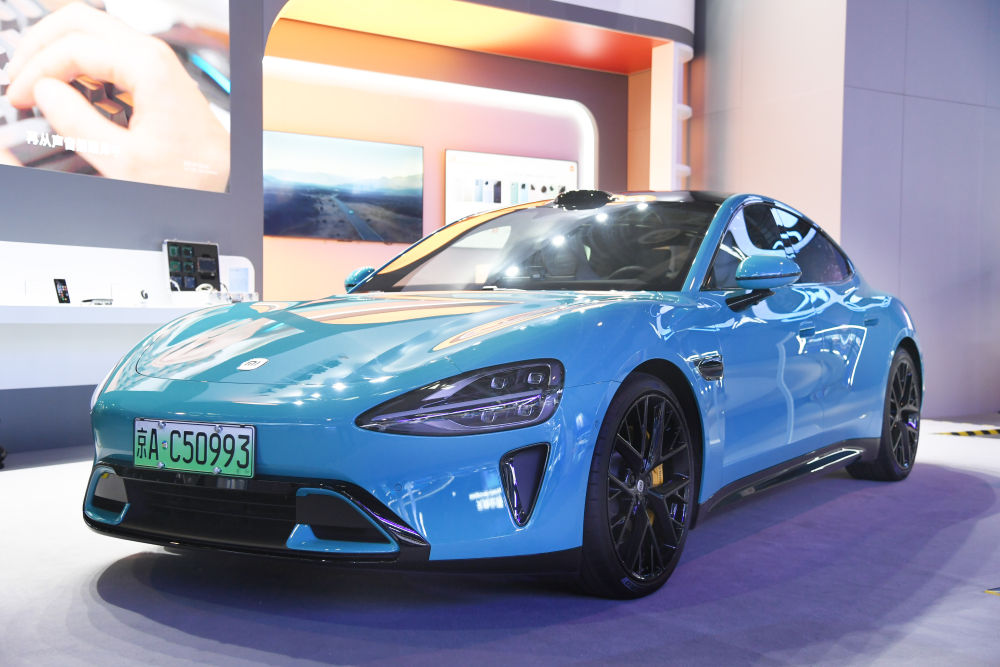 這是2024年4月27日在中關村展示中心常設展中拍攝的小米SU7汽車。
