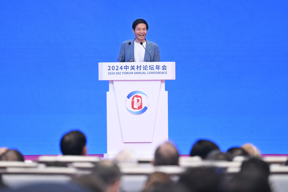 2024年4月25日,小米集團創(chuàng)始人、董事長兼首席執(zhí)行官雷軍在2024中關村論壇年會上發(fā)言。
