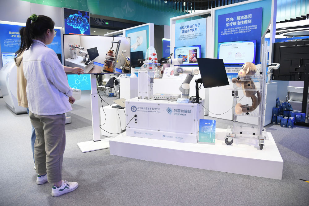 這是2024年4月27日在中關村展示中心常設展中拍攝的“北腦二號”腦機接口。