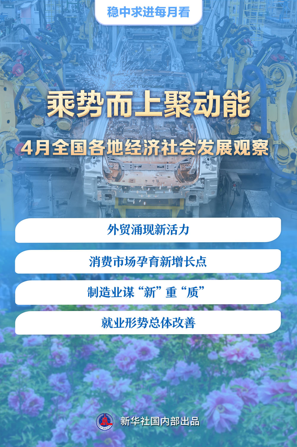 春意盎然育生機。一季度經(jīng)濟數(shù)據(jù)出爐釋放積極信號,消費市場亮點紛呈,經(jīng)濟社會發(fā)展對就業(yè)的帶動效應(yīng)逐步顯現(xiàn)……今年4月,全國各地真抓實干,乘勢而上,進一步鞏固和增強經(jīng)濟回升向好態(tài)勢。
