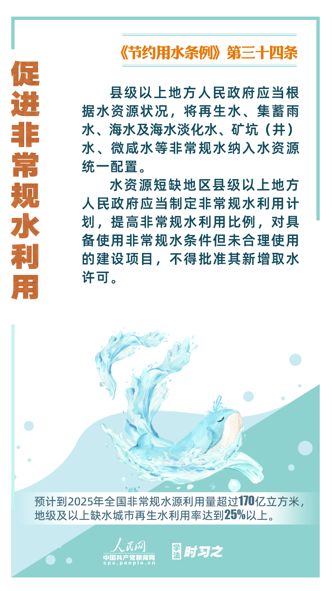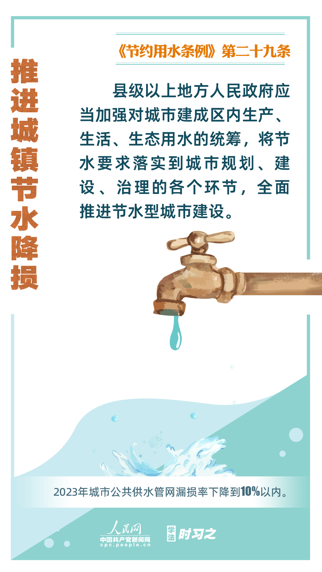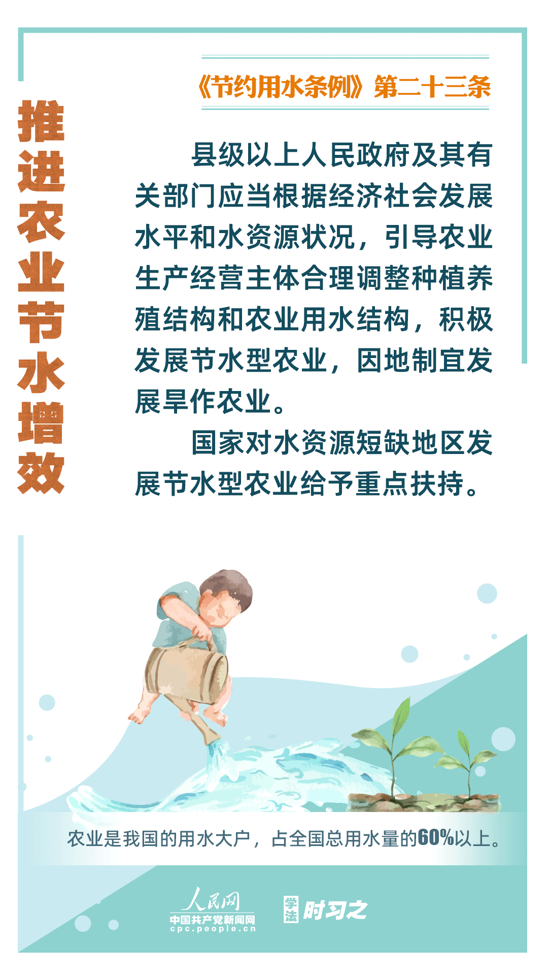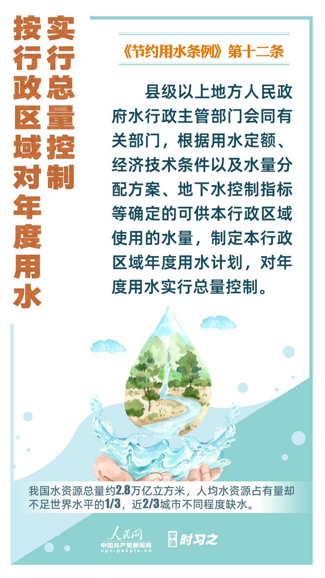《節(jié)約用水條例》(以下簡(jiǎn)稱《條例》)將于2024年5月1日起施行,這是我國(guó)首部節(jié)約用水行政法規(guī)。節(jié)約用水,是解決我國(guó)水資源短缺問(wèn)題的根本措施,《條例》以水資源可持續(xù)利用為目標(biāo),建立健全節(jié)水制度政策體系,以法治方式和法治途徑實(shí)現(xiàn)水資源節(jié)約集約高效利用,促進(jìn)全社會(huì)節(jié)約用水。