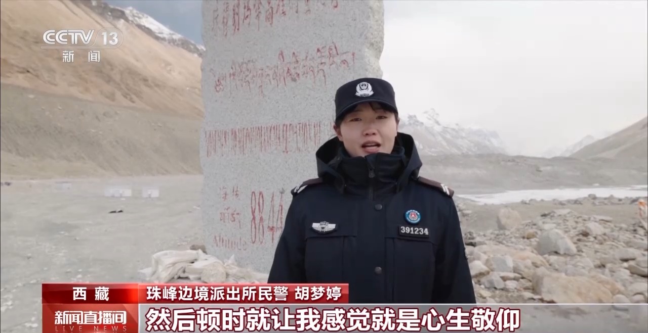 珠峰邊境派出所民警 彭莉:駐守在這里我覺得不僅可以守衛(wèi)世界最高峰,領(lǐng)略世界之巔的風(fēng)采,而且我覺得更多的是一種責(zé)任和擔(dān)當(dāng),我希望自己是一顆種子,可以在這里生根發(fā)芽,奮力生長(zhǎng)。