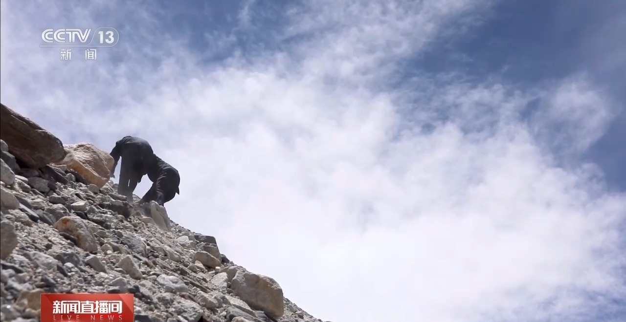 經(jīng)過8個(gè)小時(shí)的高海拔徒步行走,巡邏隊(duì)達(dá)到的最高海拔近6000米,平均巡邏海拔5300多米,全程需徒步近10公里。