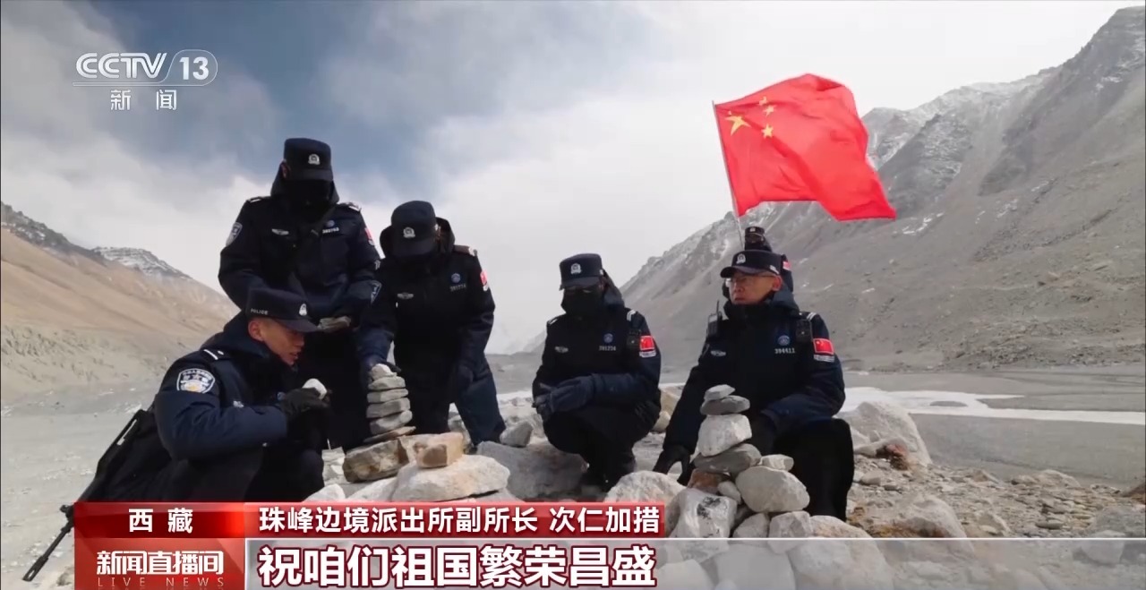 珠峰邊境派出所副所長(zhǎng) 次仁加措:我們每次到這個(gè)地方,有一個(gè)儀式,就是把石頭壘在這里,表達(dá)我們的祝福。祝祖國繁榮昌盛,也祝我們心想事成。