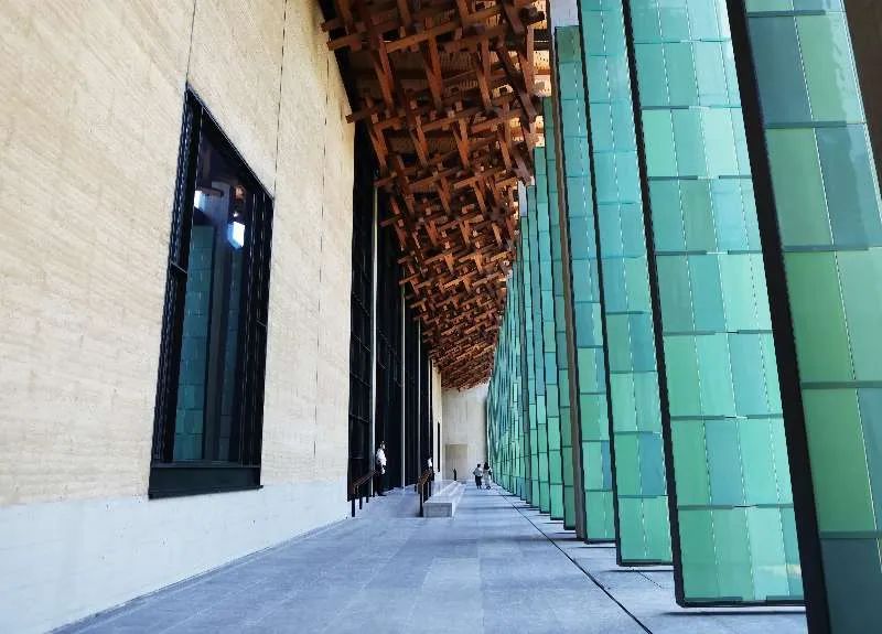 杭州國(guó)家版本館又名文潤(rùn)閣,為了充分體現(xiàn)文潤(rùn)閣的“潤(rùn)”字,杭州國(guó)家版本館把龍泉青瓷元素融入版本館設(shè)計(jì)與建設(shè)之中。在文潤(rùn)閣南大門(mén),巨大的“梅子青”青瓷覆蓋屏扇門(mén)之上,其設(shè)計(jì)靈感來(lái)自宋代屏風(fēng)。全館共設(shè)置了251樘這樣的青瓷屏扇,屏扇門(mén)厚度為22厘米、重量高達(dá)4噸。所有屏扇共計(jì)使用了約7萬(wàn)片純手工燒制的青瓷片,均來(lái)自為其專(zhuān)門(mén)改良的龍泉窯。 圖為杭州國(guó)家版本館的青瓷屏扇。浙江日?qǐng)?bào) 王建龍/攝 龍泉市委宣傳部供圖